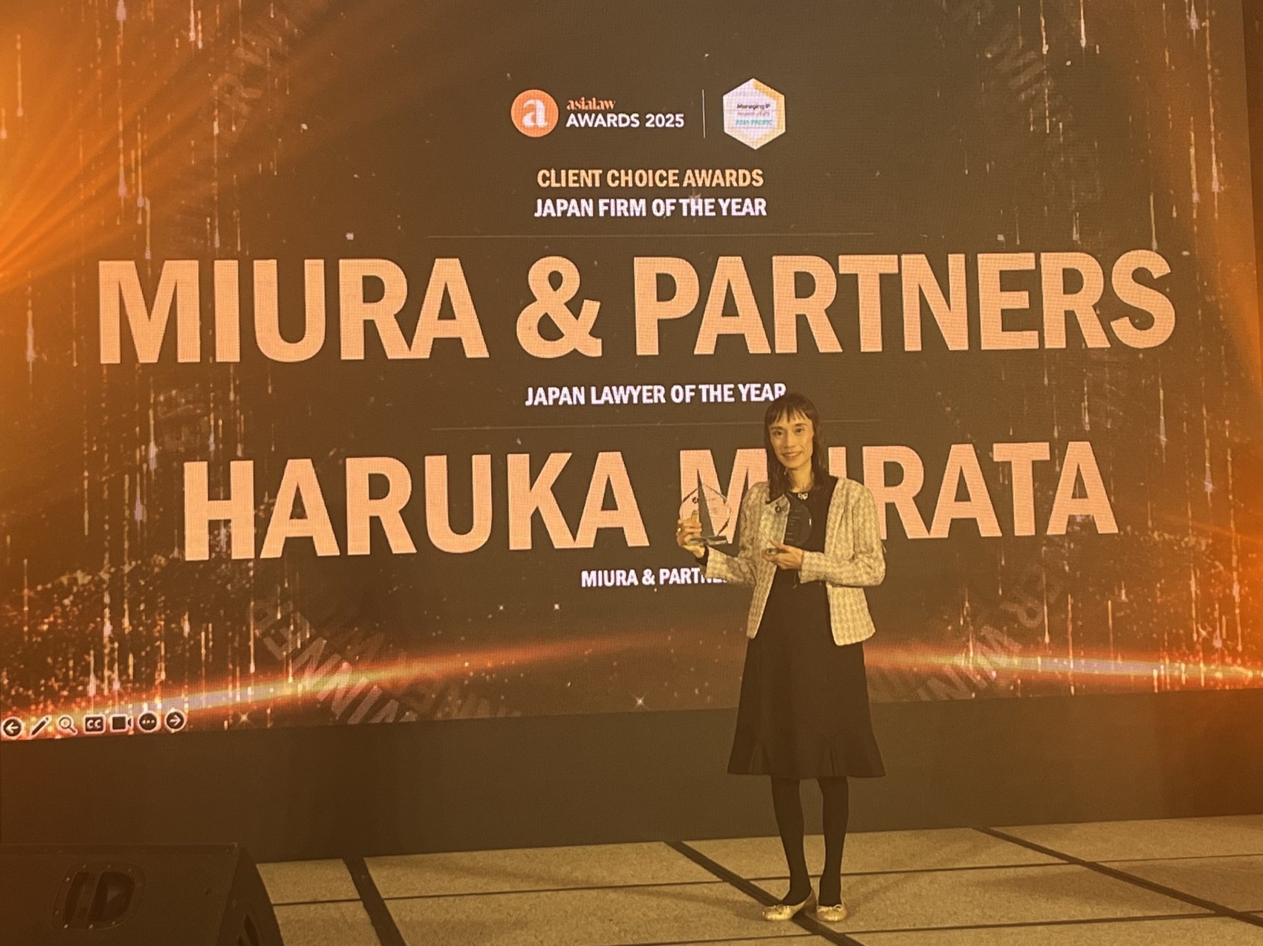 ニュース 受賞・ランキング 2025.11.06 asialaw Awards 2025において高い評価を得ました 2025年11月6日にベトナム・ホーチミンで開催されたAsialaw Awards 2025 授賞式において、当事務所が Client Choice Awards: Japan Firm of the Year を受賞しました。 また、村田 晴香弁護士が Client Choice Awards: Japan Lawyer of the Year に選出されました。 掲載媒体 asialaw 関連業務分野 M&A、競争法 / 独占禁止法、訴訟・紛争、人事労務関連法制 詳細 asialaw Awards 2025の詳細へ 当サイトでは、サイトの利便性向上を目的に、Cookieを使用しております。詳しくは、プライバシーポリシーをご参照ください。Cookieの利用に同意頂ける場合は、「同意する」ボタンを押してください。 同意する