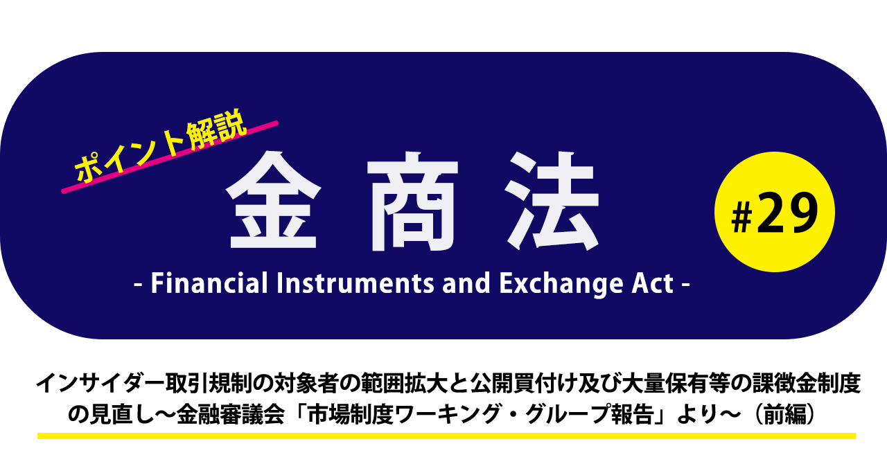 著書・論文 ニュースレター・コラム 2026.01.13 ポイント解説・金商法 #29「インサイダー取引規制の対象者の範囲拡大と公開買付け及び大量保有等の課徴金制度の見直し~金融審議会『市場制度ワーキング・グループ報告』より~(前編)」 タイトル ポイント解説・金商法 #29「インサイダー取引規制の対象者の範囲拡大と公開買付け及び大量保有等の課徴金制度の見直し~金融審議会『市場制度ワーキング・グループ報告』より~(前編)」 著者 後藤 徹也、新岡 美波 関連業務分野 M&A、ファイナンス、危機管理、情報セキュリティ 掲載年月日 2026年1月13日 詳細 ポイント解説・金商法 #29「インサイダー取引規制の対象者の範囲拡大と公開買付け及び大量保有等の課徴金制度の見直し~金融審議会『市場制度ワーキング・グループ報告』より~(前編)」の詳細ページへ PDFはこちらから 当サイトでは、サイトの利便性向上を目的に、Cookieを使用しております。詳しくは、プライバシーポリシーをご参照ください。Cookieの利用に同意頂ける場合は、「同意する」ボタンを押してください。 同意する